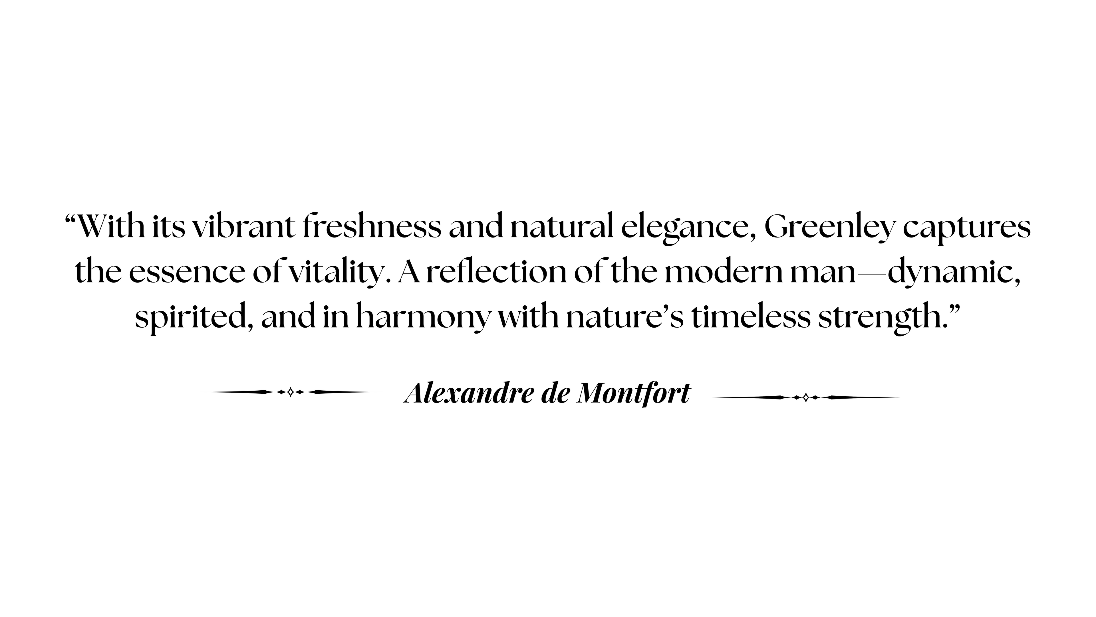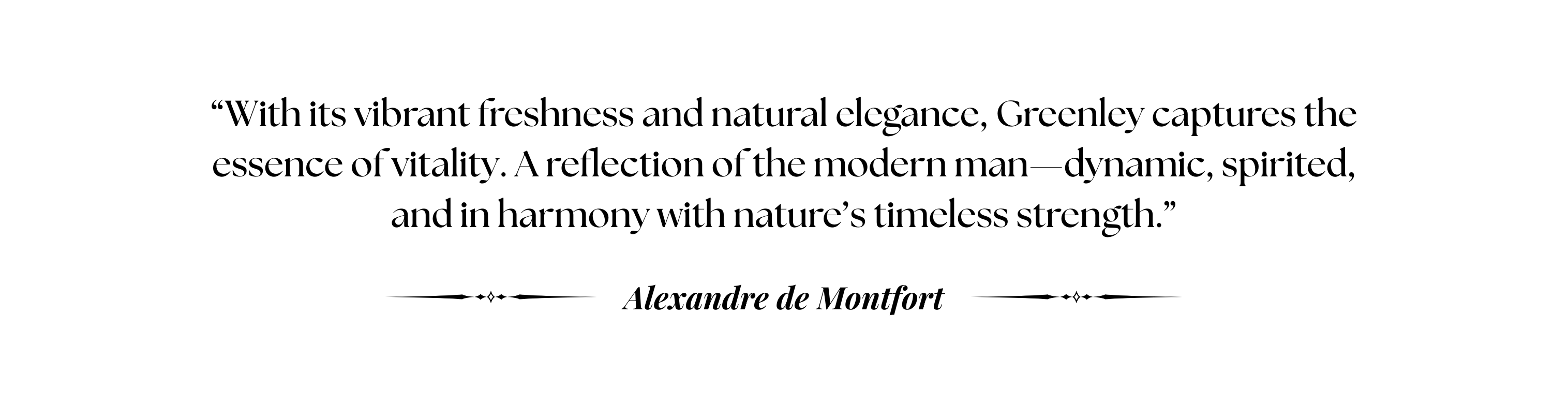 Greenley is a statuesque expression of vitality, capturing the crisp brightness of green apple, fresh citrus, and noble woods in a fragrance that radiates energy, elegance, and timeless masculine sophistication.