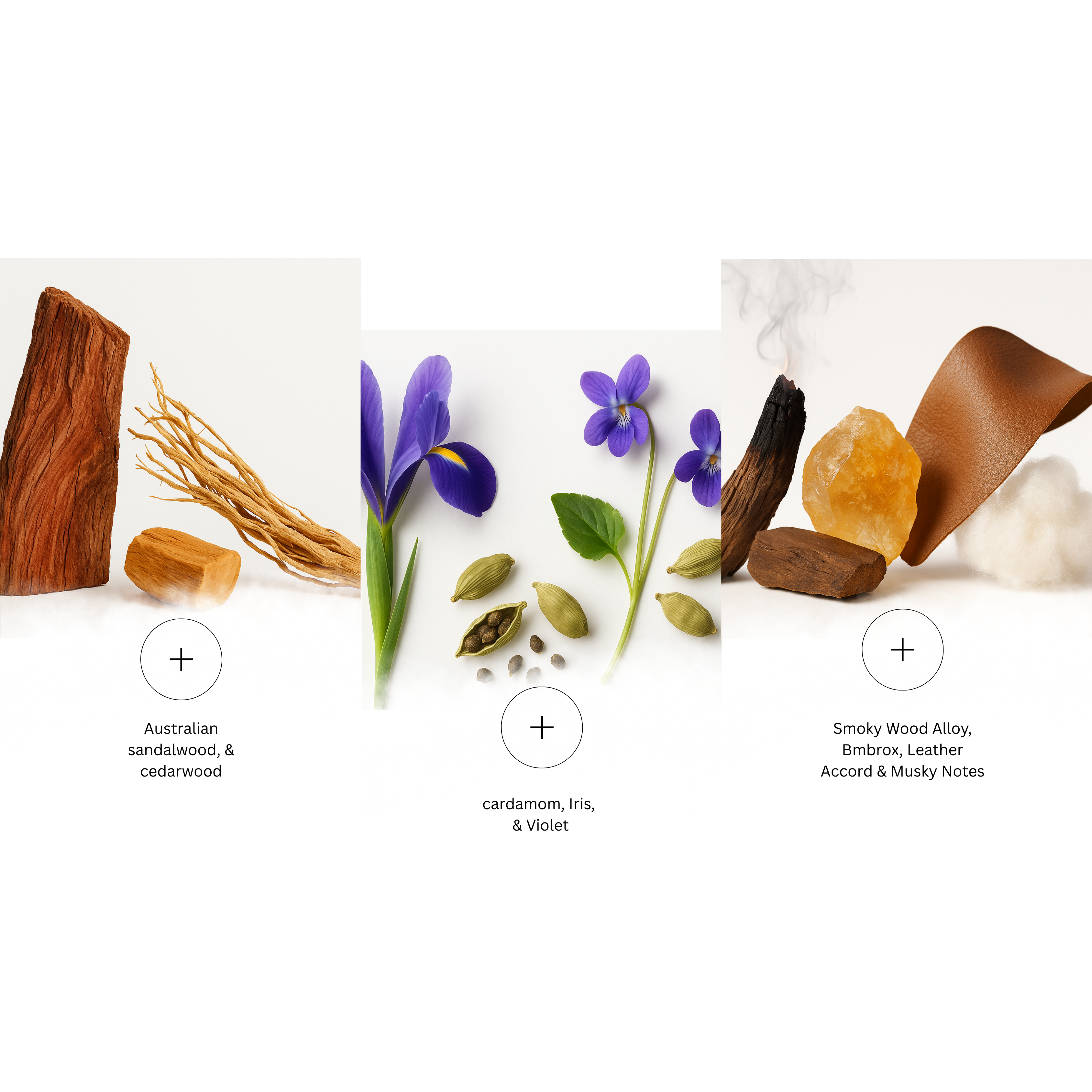 - Heart Notes: Australian Sandalwood, Cedarwood, Smoky Wood Alloy